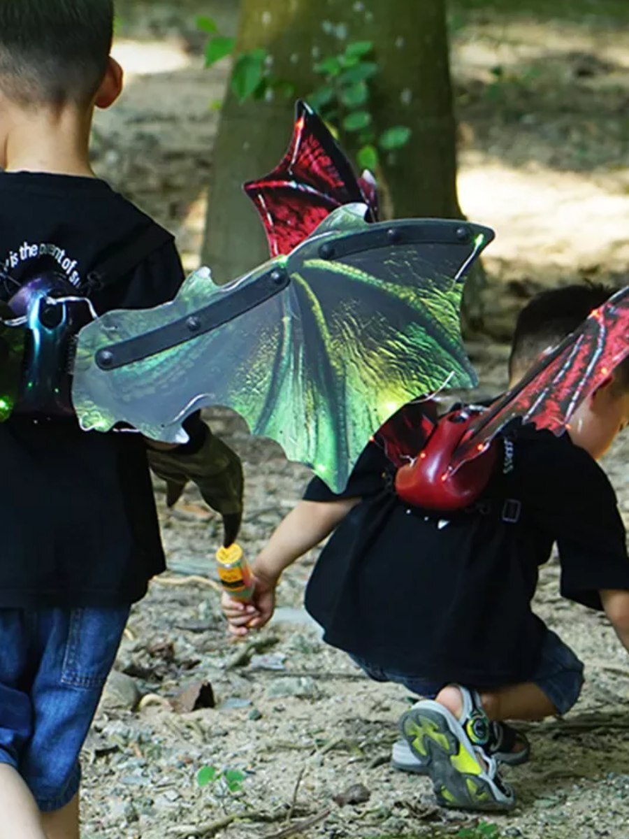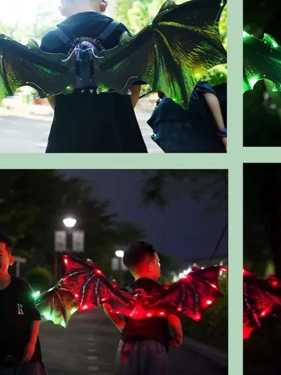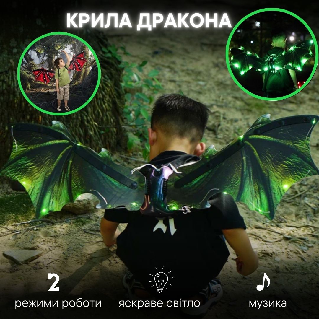 LED-лампи ✨ створюють ефект чарівного світіння, перетворюючи будь-який зовнішній вигляд на справжню казку. Яскравий і ефектний образ органічно виглядає в темряві, привертаючи увагу оточуючих і створюючи атмосферу свята. Дитячі крила, що працюють від батарейок, абсолютно безпечні для дітей, що є одним із головних моментів, на які варто звернути увагу під час вибору костюма. Крила функціональні: вони вміють змахувати вгору та вниз, а також відтворюють звуки 🎵, що додає цікаві ефекти.